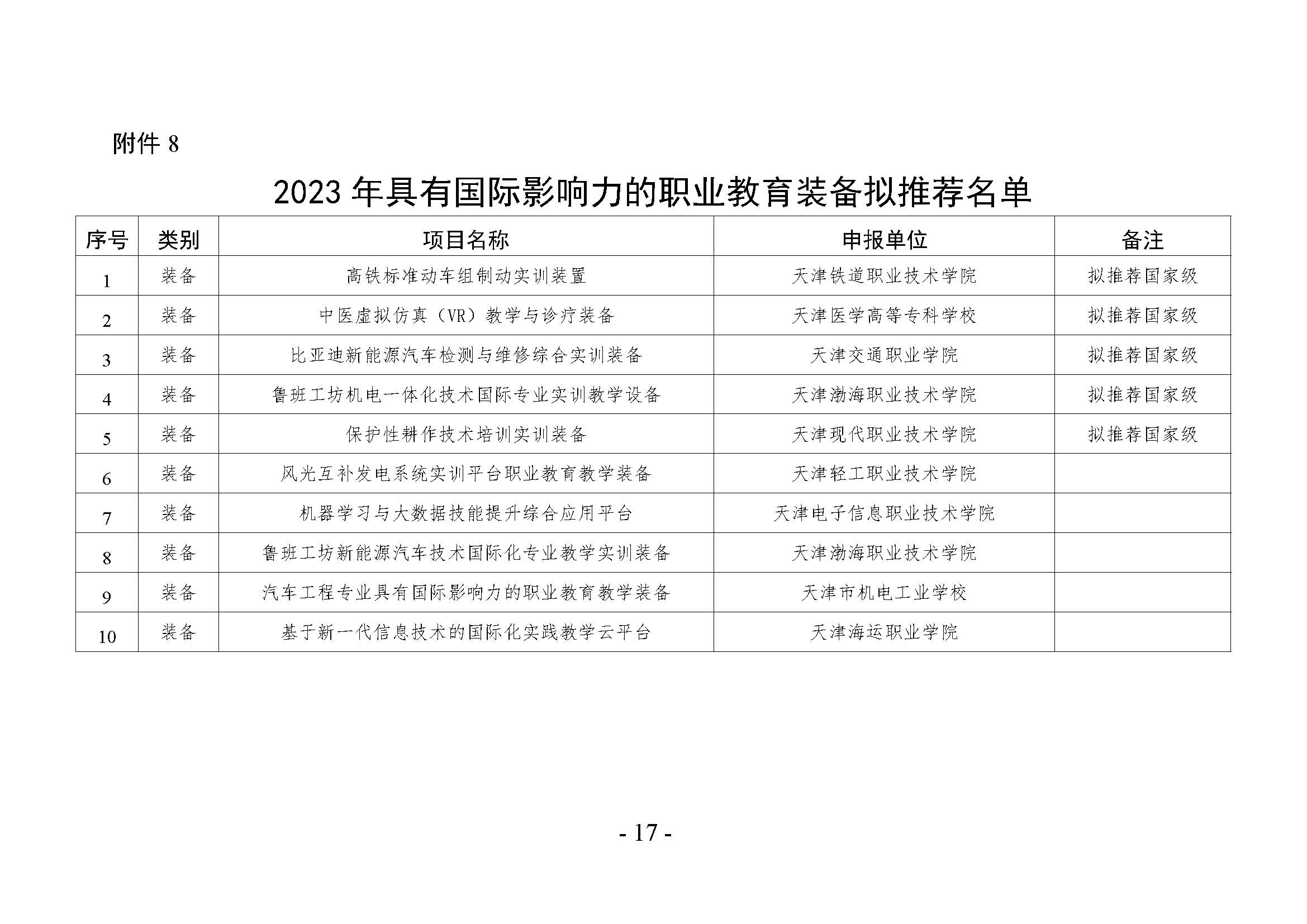 10月17日,天津市教育委員會(huì)在其官方發(fā)布《關(guān)于現(xiàn)代職業(yè)教育體系建設(shè)改革相關(guān)重點(diǎn)任務(wù)天津市擬推薦名單的公示》的通知,根據(jù)教育部辦公廳《關(guān)于加快推進(jìn)現(xiàn)代職業(yè)教育體系建設(shè)改革重點(diǎn)任務(wù)的通知》(教職成廳函〔2023〕20號(hào))相關(guān)要求,市教委組織開展了職業(yè)教育一流核心課程、優(yōu)質(zhì)教材、校企合作典型生產(chǎn)實(shí)踐、具有較高國際化水平的職業(yè)學(xué)校、具有國際影響力的職業(yè)教育標(biāo)準(zhǔn)、資源、裝備等項(xiàng)目申報(bào)工作,經(jīng)學(xué)校申報(bào)、專家評(píng)審等程序,將現(xiàn)代職業(yè)教育體系建設(shè)改革重點(diǎn)任務(wù)擬入選市級(jí)項(xiàng)目及天津市擬推薦名單予以公示。