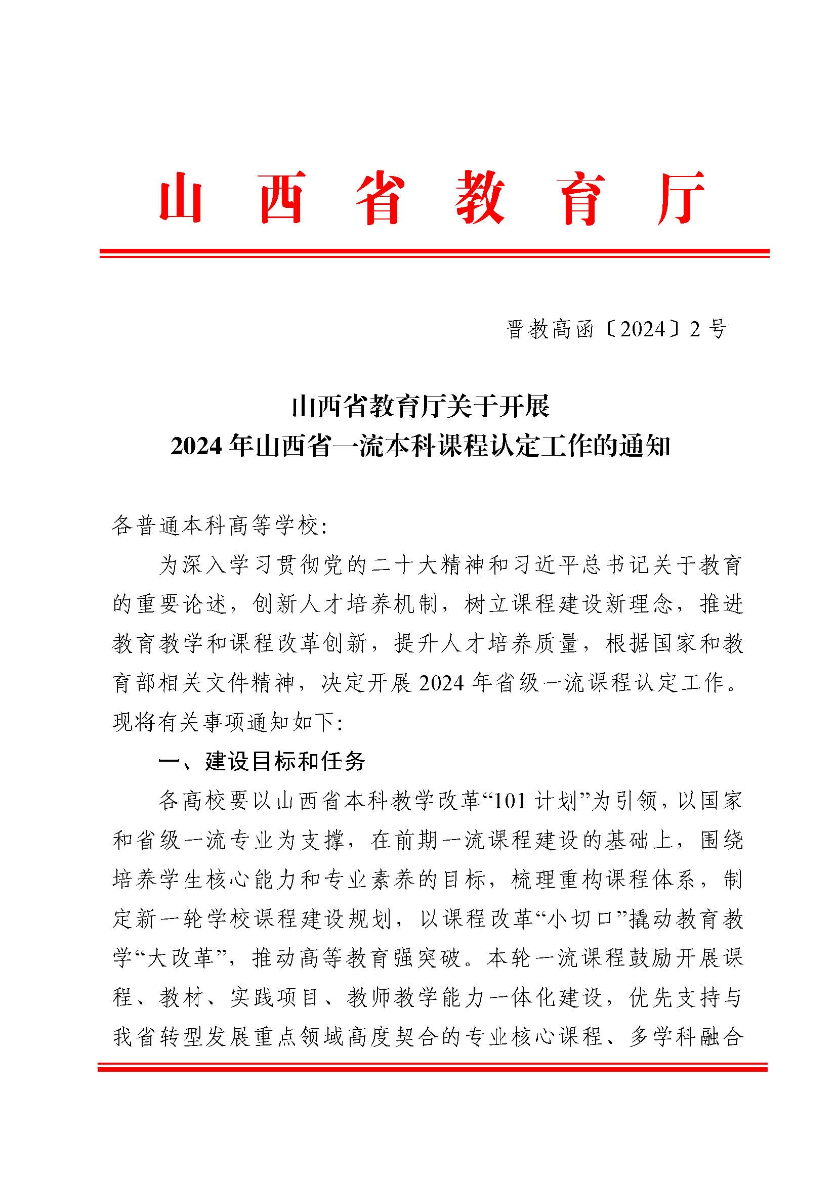 山西省教育廳發(fā)布關于開展 2024 年山西省一流本科課程認定工作的通知