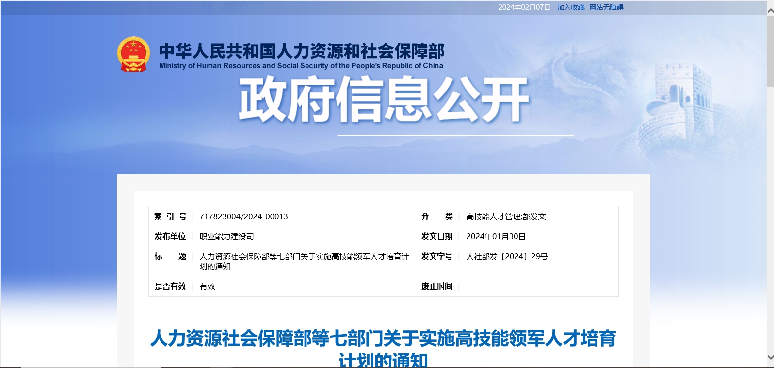 為貫徹落實(shí)黨的二十大關(guān)于加快建設(shè)國(guó)家戰(zhàn)略人才力量,努力培養(yǎng)造就更多大國(guó)工匠、高技能人才的戰(zhàn)略部署,進(jìn)一步擴(kuò)大高技能人才數(shù)量規(guī)模,提升素質(zhì)水平,從2024年到2026年,聯(lián)合組織實(shí)施高技能領(lǐng)軍人才培育計(jì)劃。
