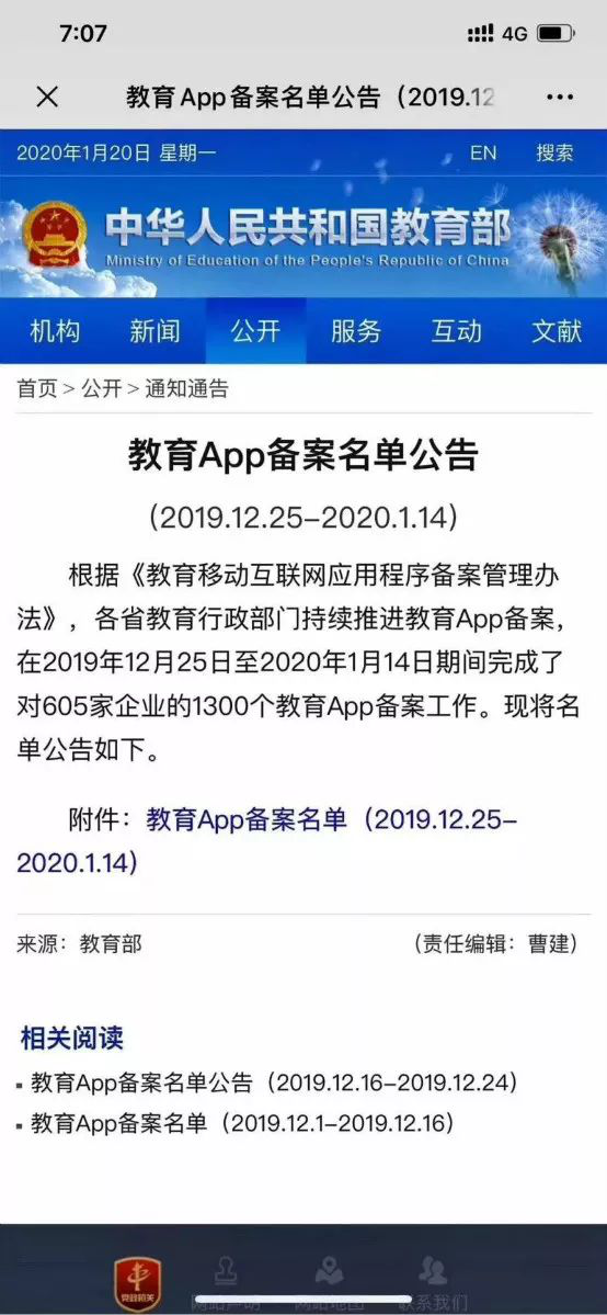 2019年11月,教育部辦公廳印發(fā)《教育移動互聯(lián)網(wǎng)應用程序備案管理辦法》,要求教育企業(yè)在2020年1月31日前完成備案,一省備案,全國有效。   2020年1月20日......