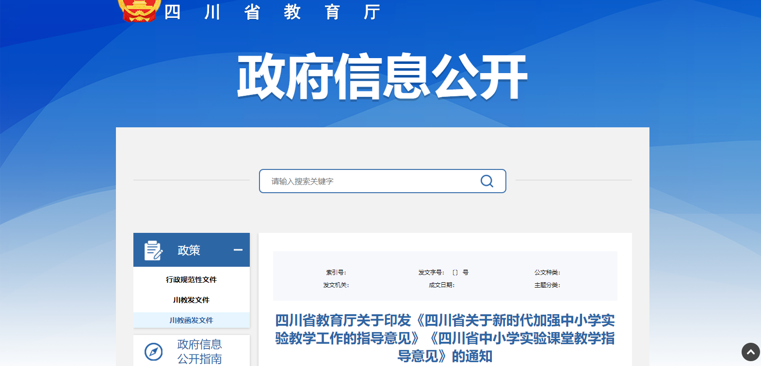 四川省教育廳關(guān)于印發(fā) 《四川省關(guān)于新時代加強(qiáng)中小學(xué)實(shí)驗(yàn)教學(xué)工作 的指導(dǎo)意見》《四川省中小學(xué)實(shí)驗(yàn)課堂教學(xué) 指導(dǎo)意見》的通知