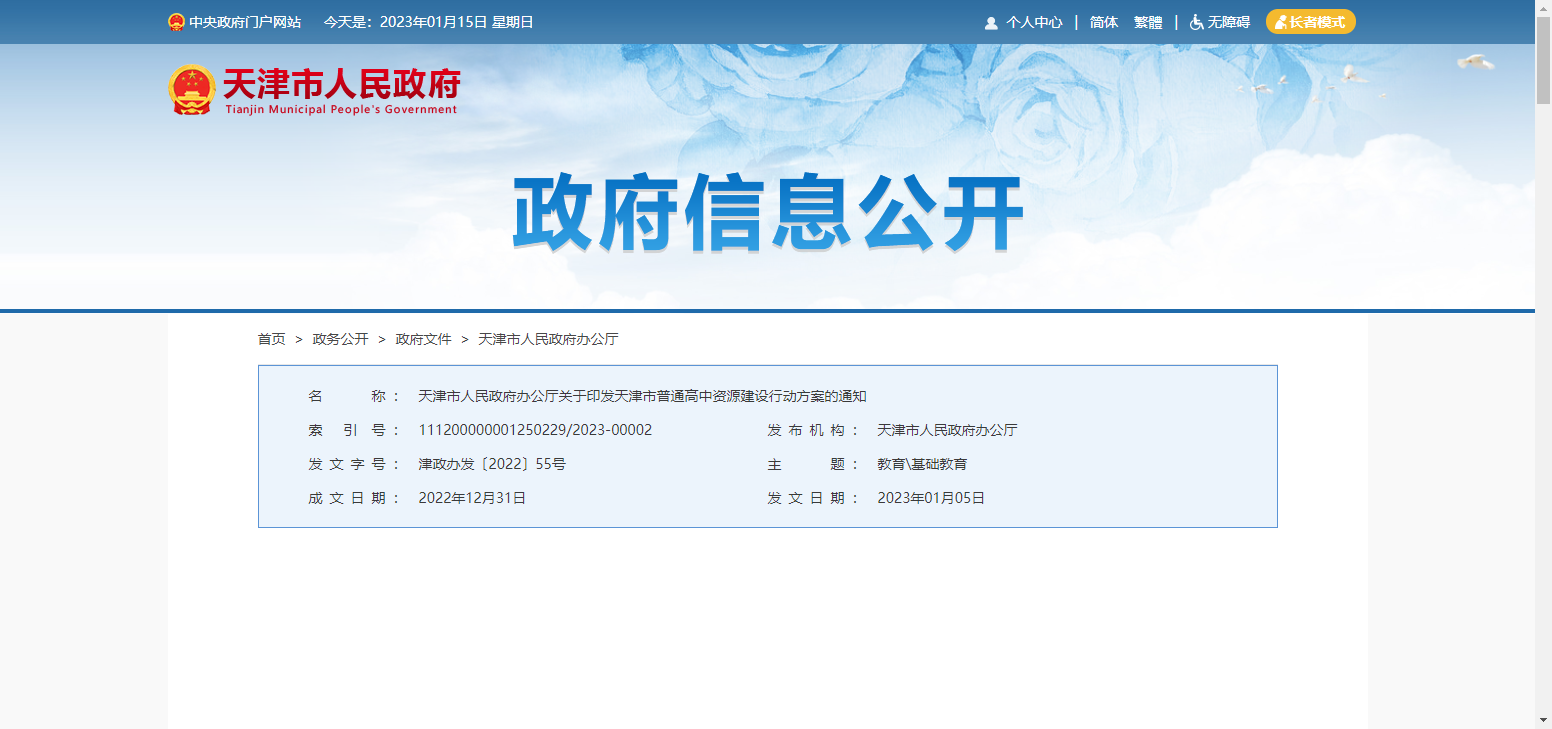《天津市普通高中資源建設(shè)行動方案》發(fā)布