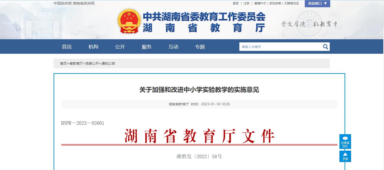 湖南:進一步加強中小學(xué)實驗教學(xué),2024年將實驗操作納入中考