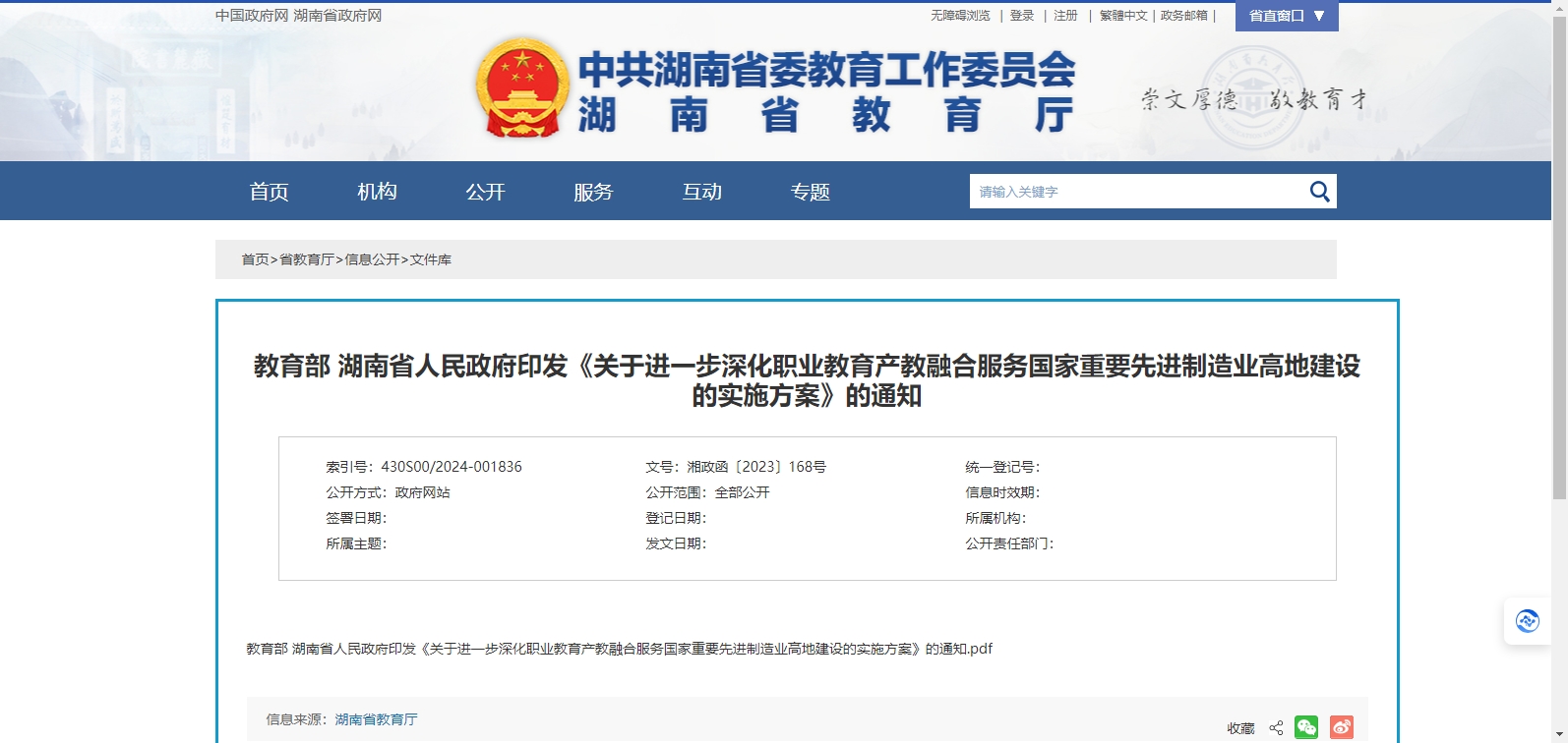 重磅!教育部 湖南省人民政府《關(guān)于進(jìn)一步深化職業(yè)教育產(chǎn)教融合服務(wù)國家重要先進(jìn)制造業(yè)高地建設(shè)的實(shí)施方案》發(fā)布